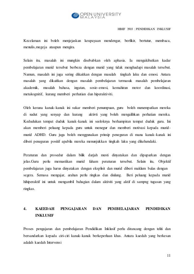 E portfolio kertas kerja • 1. HBEF3585206001-NOR’AIN BT MOHAMED SUDKI 1 FAKULTI PENDIDIKAN DAN BAHASA SEMESTER 8 MEI 2013 HBEF 3503 PENDIDIKAN INKLUSIF NAMA: NOR’AIN BT MOHAMED SUDKI NO. MATRIK: 06001 NO. KAD PENGENALAN: 6806 NO.